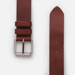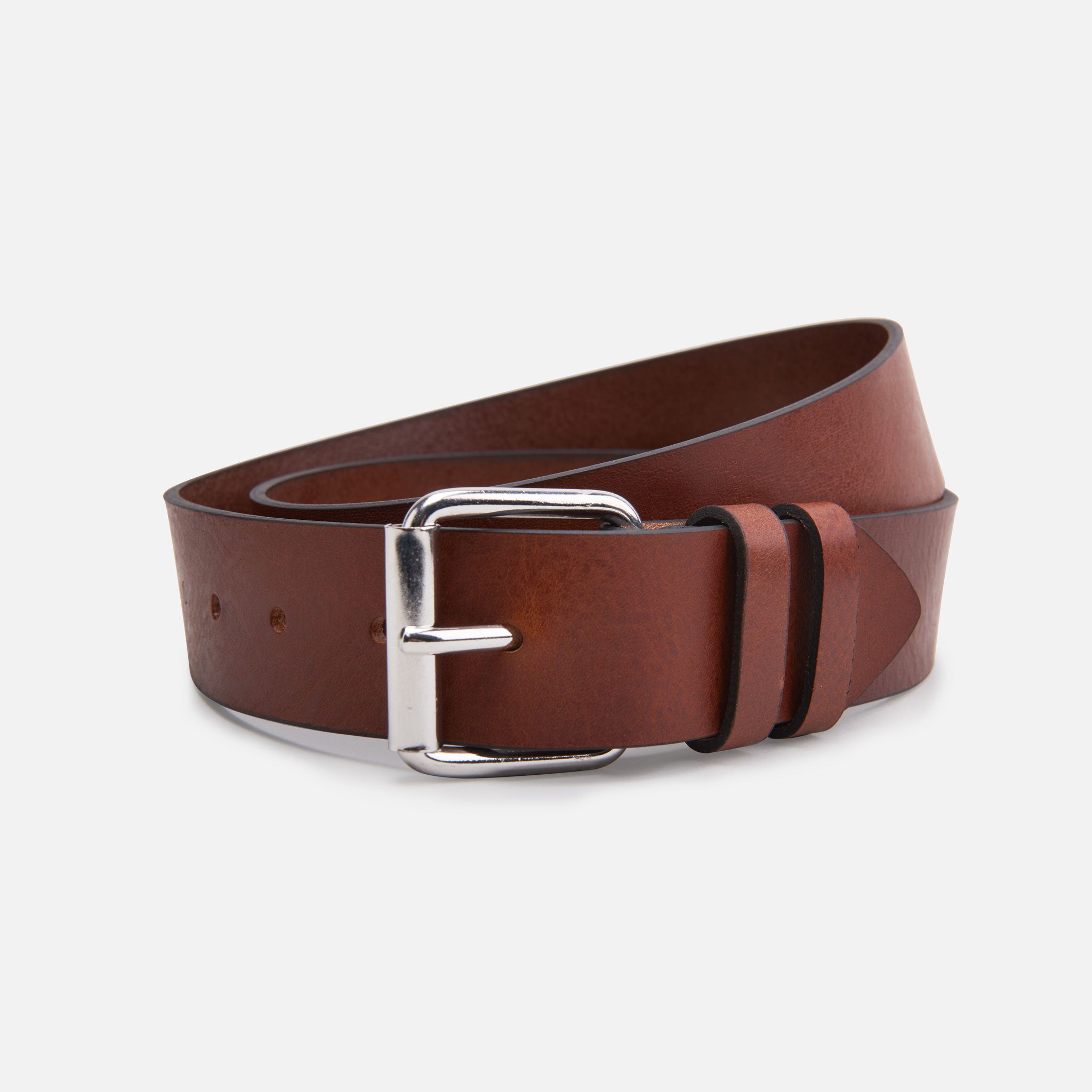 Bälte i brunt vegetabiliskt garvat läder. 40 mm brett. Tillverkad i Sverige.