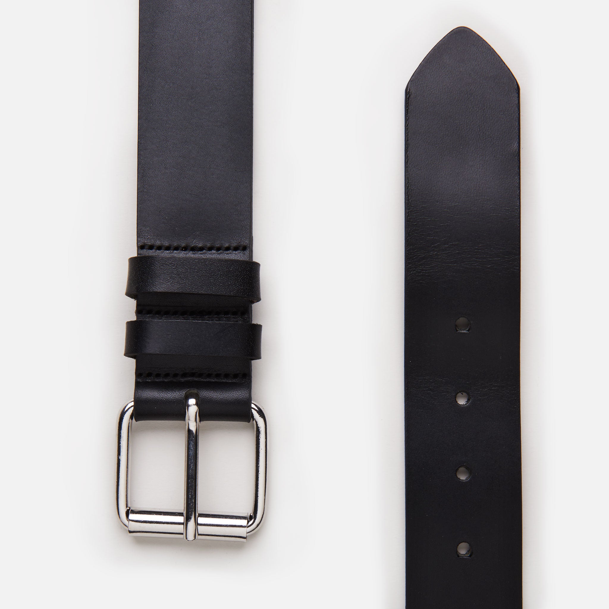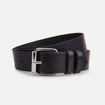 Bälte i svart vegetabiliskt garvat läder. 40 mm brett. Tillverkad i Sverige.