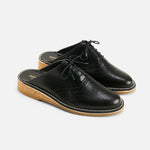 Ovanlädret och sulan formar sig fint efter foten efter en kort tids användning och tofflorna känns då mjuka och bekväma. Den ergonomiska klacken fördelar kroppsvikten vilket ger en bättre hållning och minskar belastning på både rygg och hälsenor.