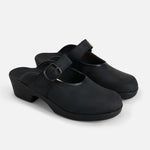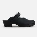 Ovanlädret och sulan formar sig fint efter foten efter en kort tids användning och clogsen känns då mjuka och bekväma. Gummisulan är sviktande vilket är skönt för ryggen när du står och går hela dagar. Spännet över foten gör att du kan justera vidden runt foten.