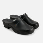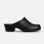 Ovanlädret och sulan formar sig fint efter foten efter en kort tids användning och clogsen känns då mjuka och bekväma. Gummisulan är sviktande vilket är skönt för ryggen när du står och går hela dagar. Spännet över foten gör att du kan justera vidden runt foten.