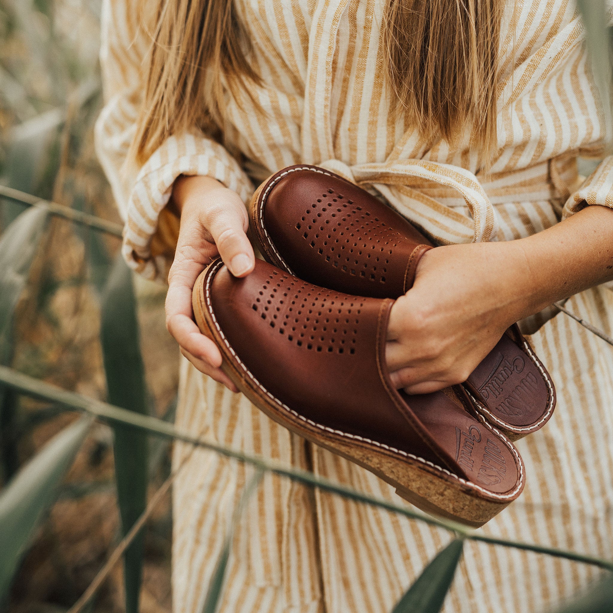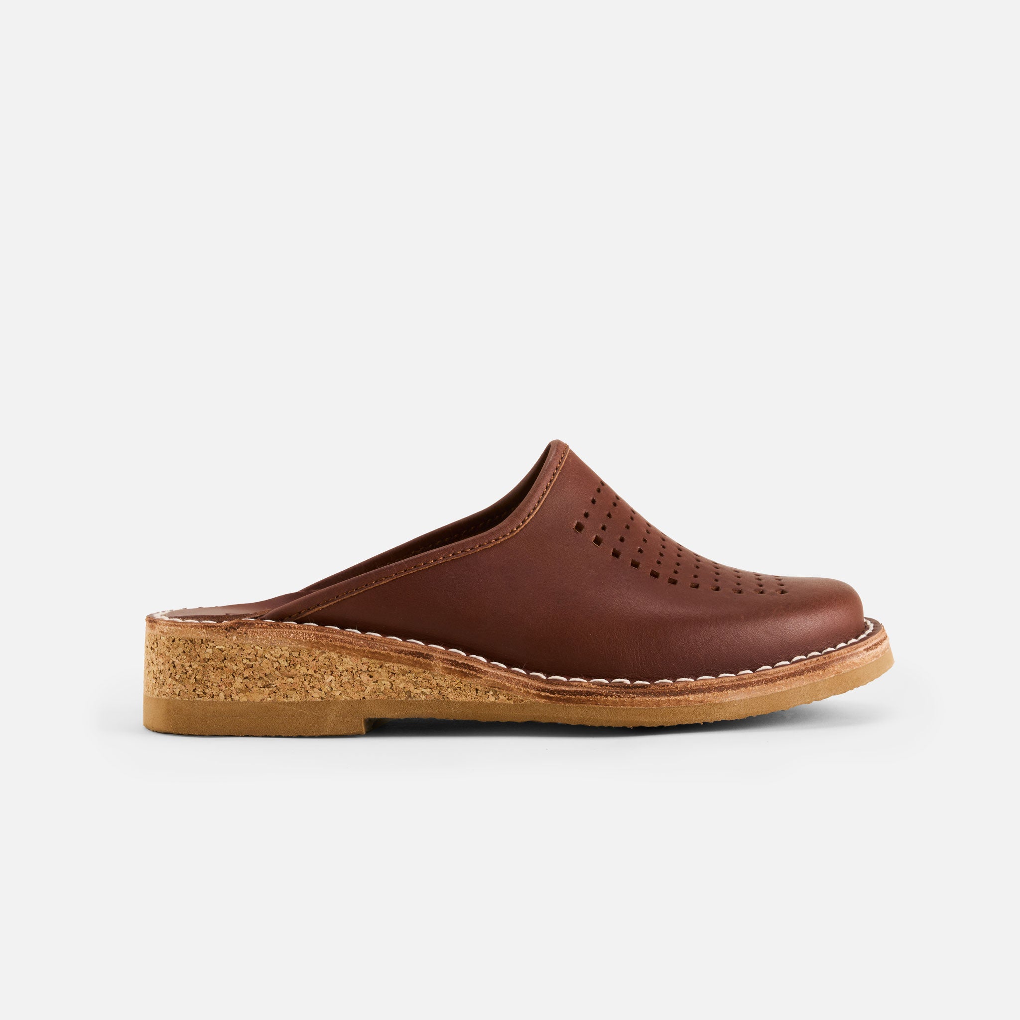 Ovanlädret och sulan formar sig fint efter foten efter en kort tids användning och tofflorna känns då mjuka och bekväma. Den ergonomiska klacken fördelar kroppsvikten vilket ger en bättre hållning och minskar belastning på både rygg och hälsenor.