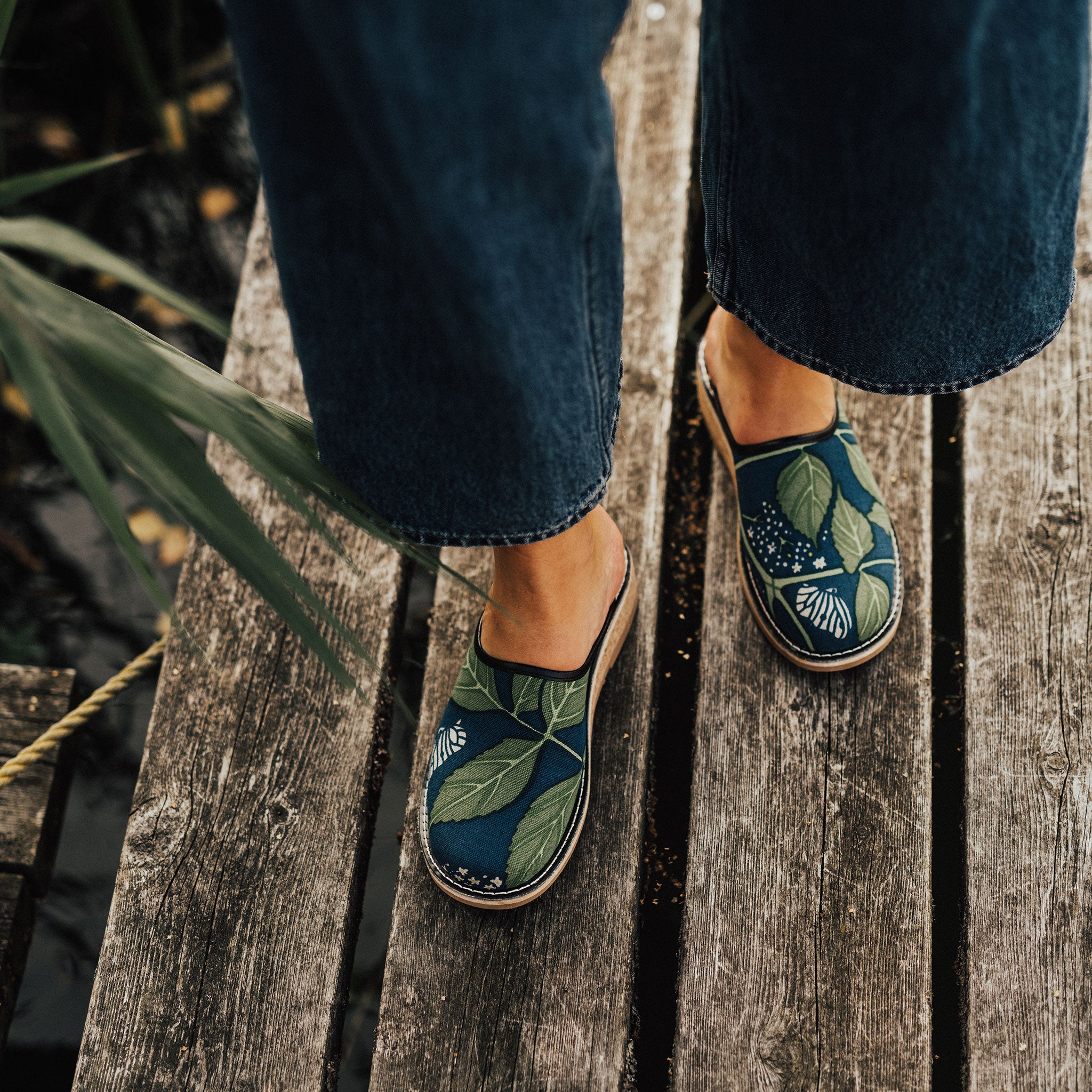 Ovanlädret och sulan formar sig fint efter foten efter en kort tids användning och tofflorna känns då mjuka och bekväma. Den ergonomiska klacken fördelar kroppsvikten vilket ger en bättre hållning och minskar belastning på både rygg och hälsenor.
