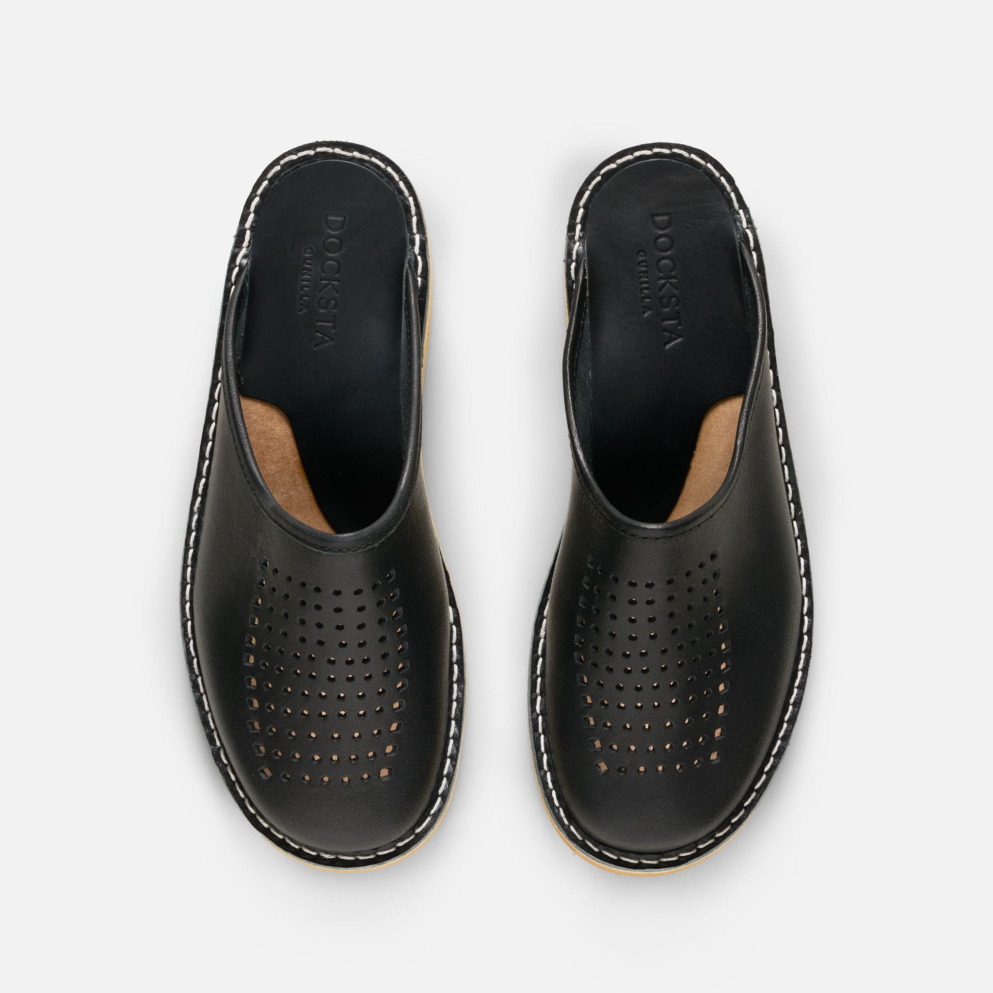 Gunilla Svart Vegetabilgarvat Läder med hål