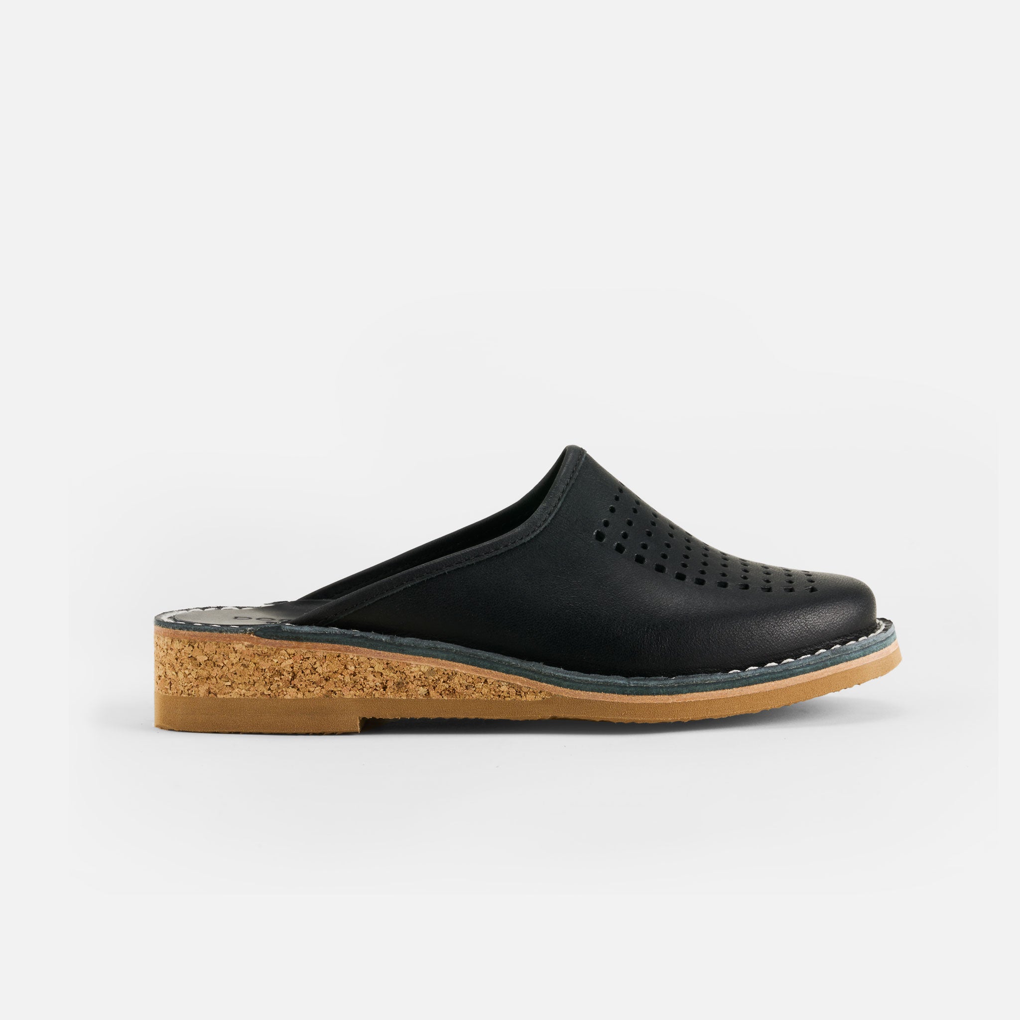 Ovanlädret och sulan formar sig fint efter foten efter en kort tids användning och tofflorna känns då mjuka och bekväma. Den ergonomiska klacken fördelar kroppsvikten vilket ger en bättre hållning och minskar belastning på både rygg och hälsenor.