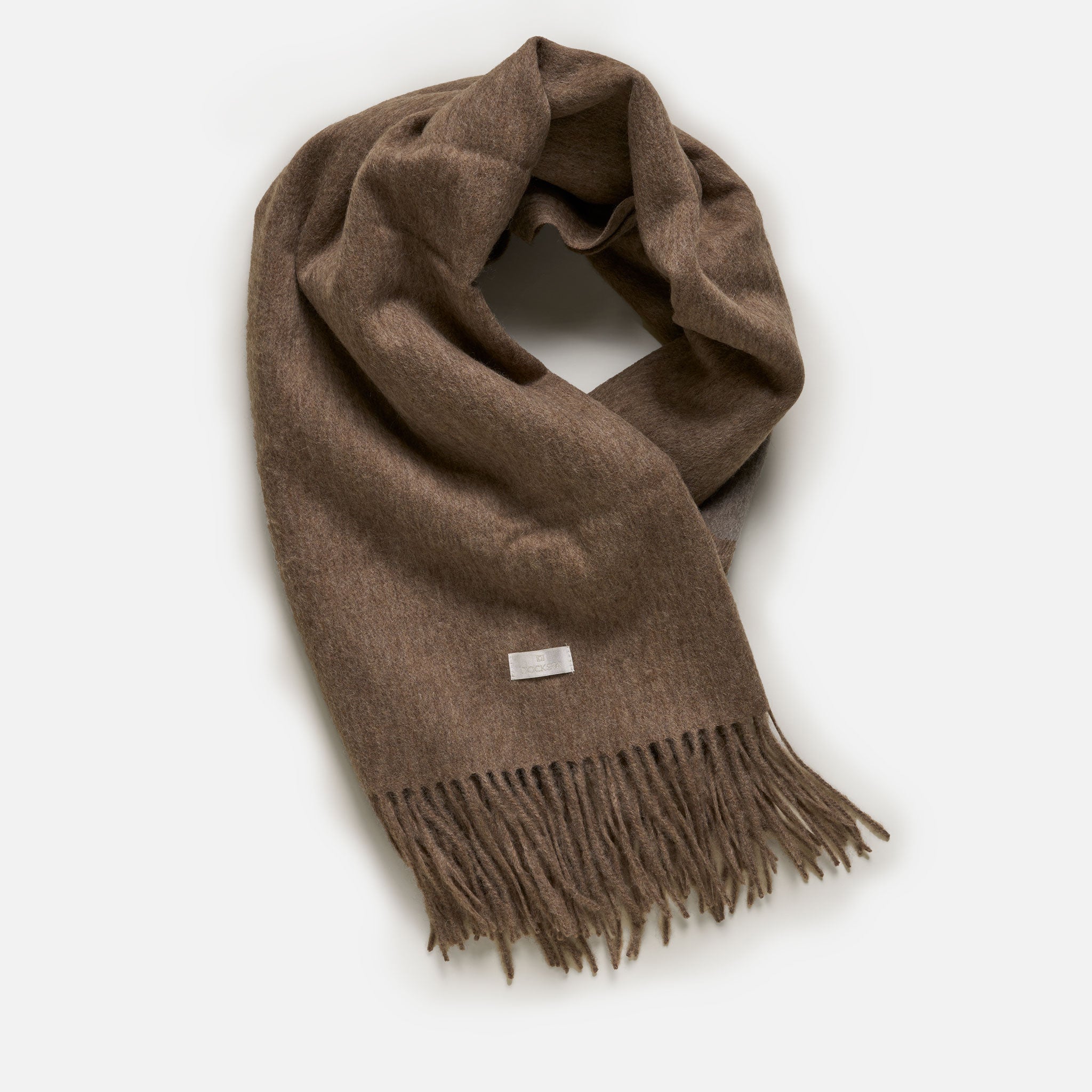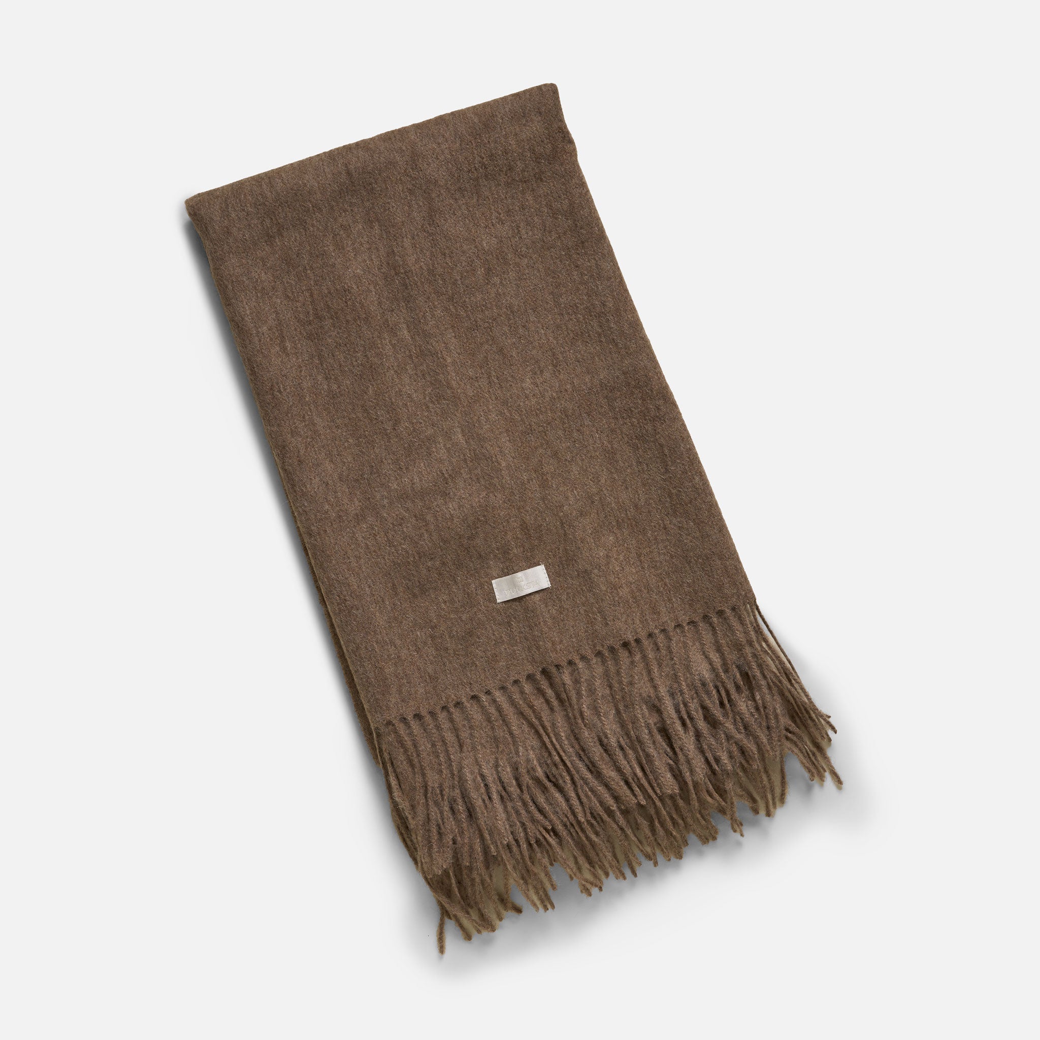 Beigebrun melerad halsduk med fransar. Storlek: 70*200 cm Material: 100% extra fin merinoull. Tvättråd: Handtvätt med kallt vatten och ulltvättmedel.