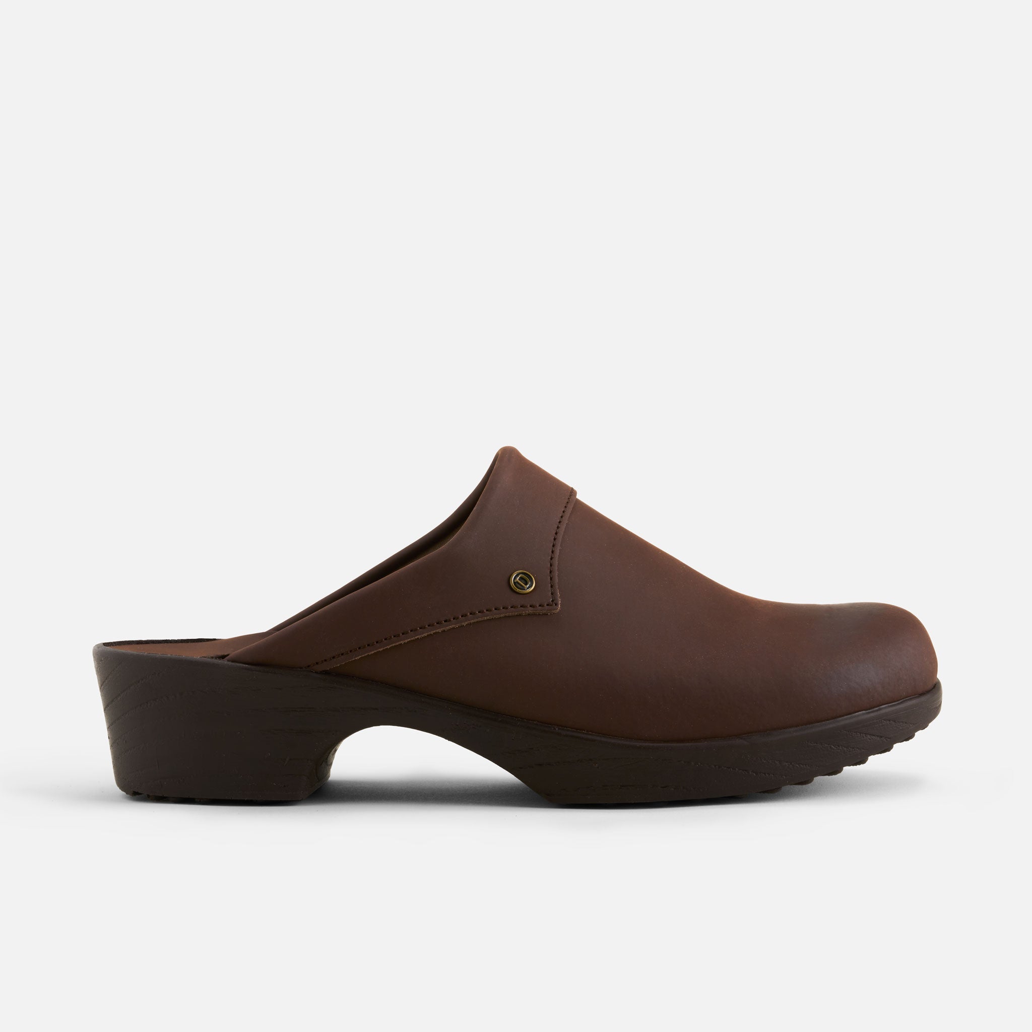 Ovanlädret och sulan formar sig fint efter foten efter en kort tids användning och clogsen känns då mjuka och bekväma. Den sviktande gummisulan är skön för ryggen när du står och går hela dagar. Spännet gör att du kan justera vidden över foten.
