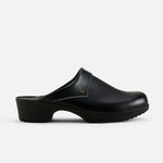 Ovanlädret och sulan formar sig fint efter foten efter en kort tids användning och clogsen känns då mjuka och bekväma. Den sviktande gummisulan är skön för ryggen när du står och går hela dagar. Spännet gör att du kan justera vidden över foten.