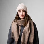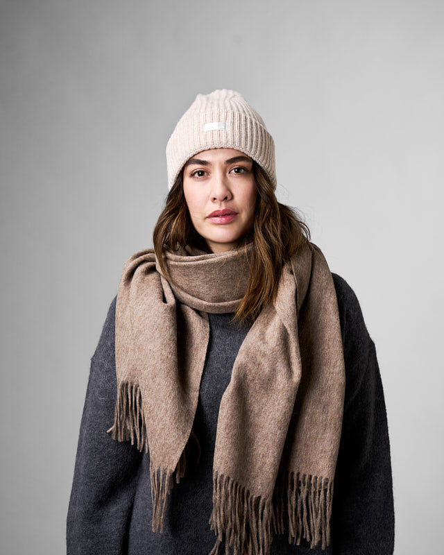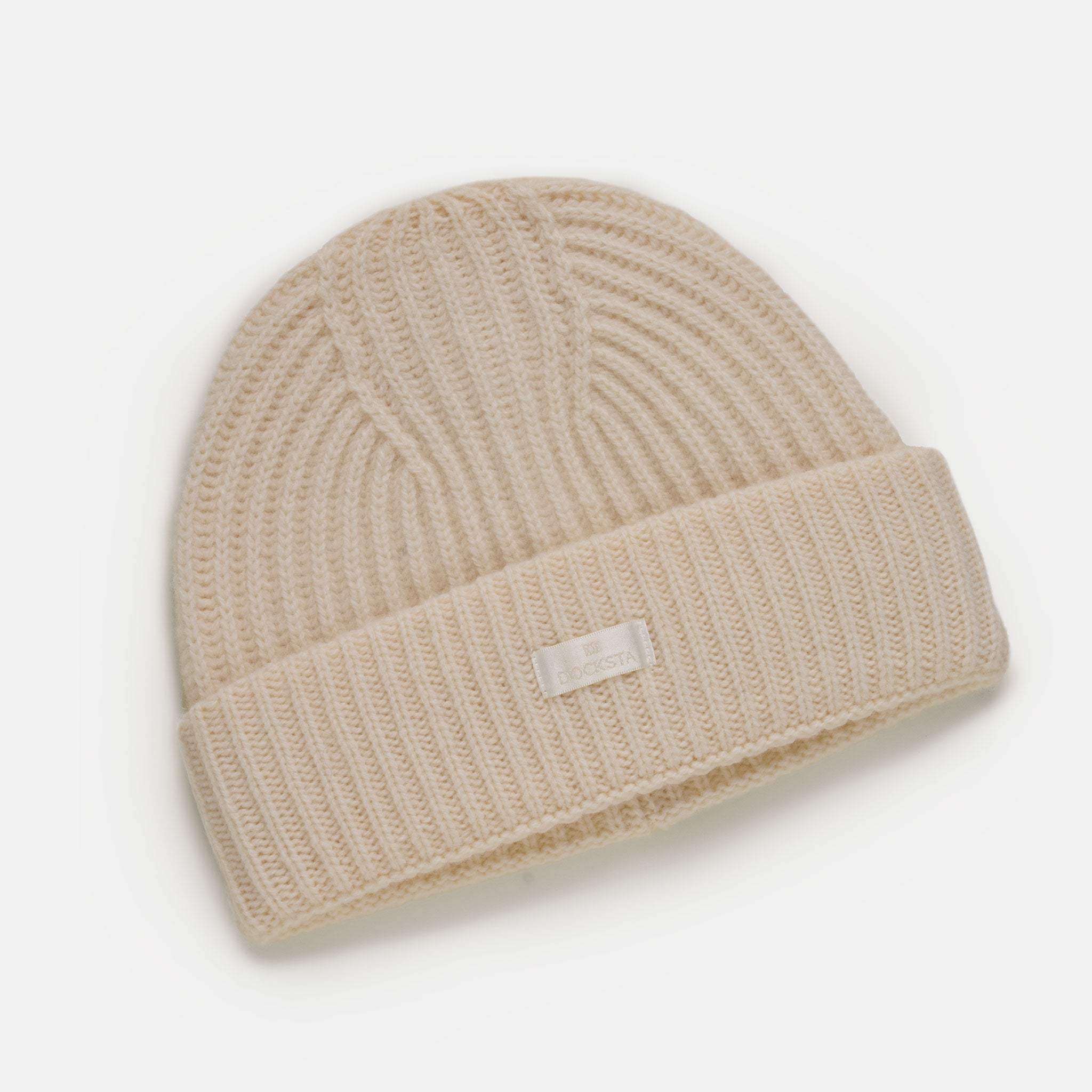 Vit stickad mössa. Storlek: One size Material: 100% extra fin merinoull. Tvättråd: Handtvätt med kallt vatten och ulltvättmedel