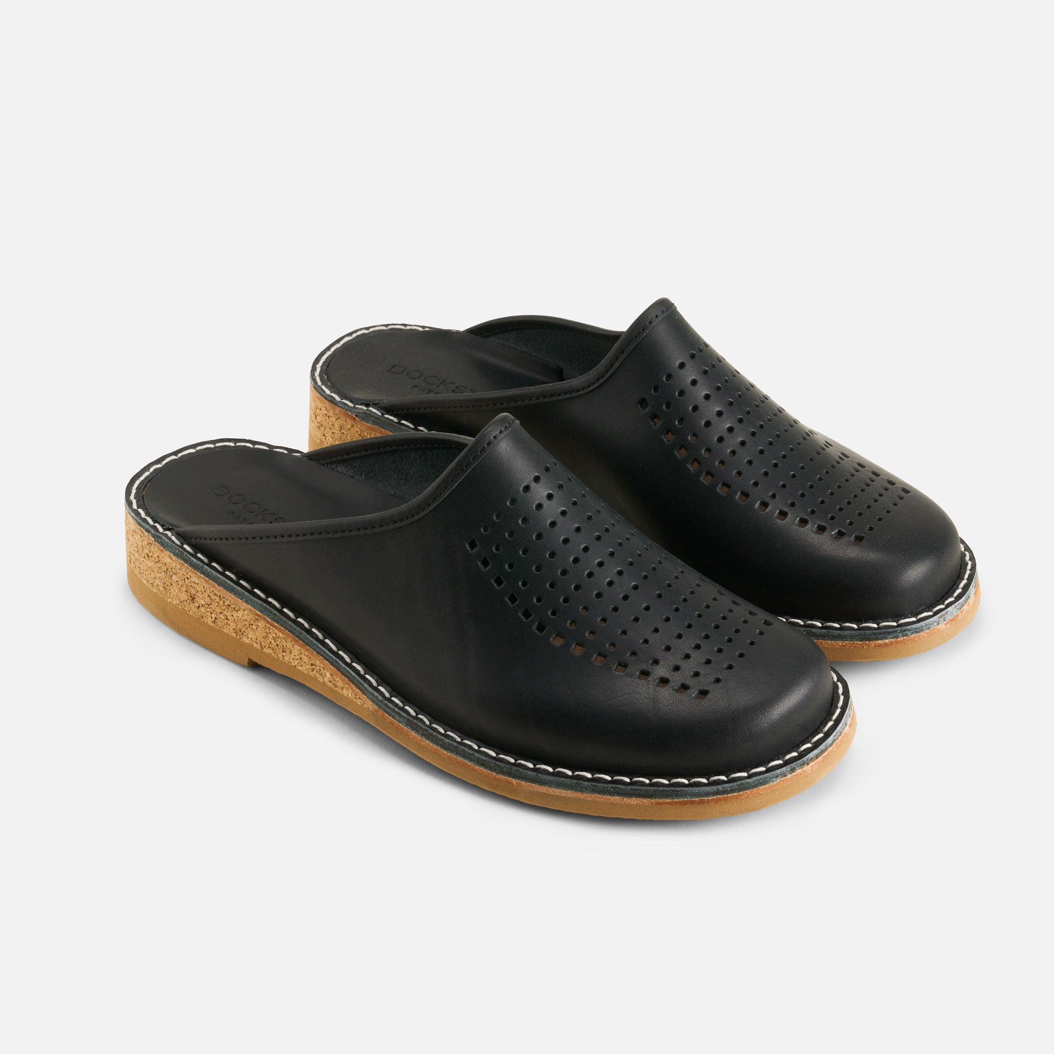 Ovanlädret och sulan formar sig fint efter foten efter en kort tids användning och tofflorna känns då mjuka och bekväma. Den ergonomiska klacken fördelar kroppsvikten vilket ger en bättre hållning och minskar belastning på både rygg och hälsenor.