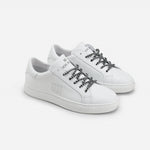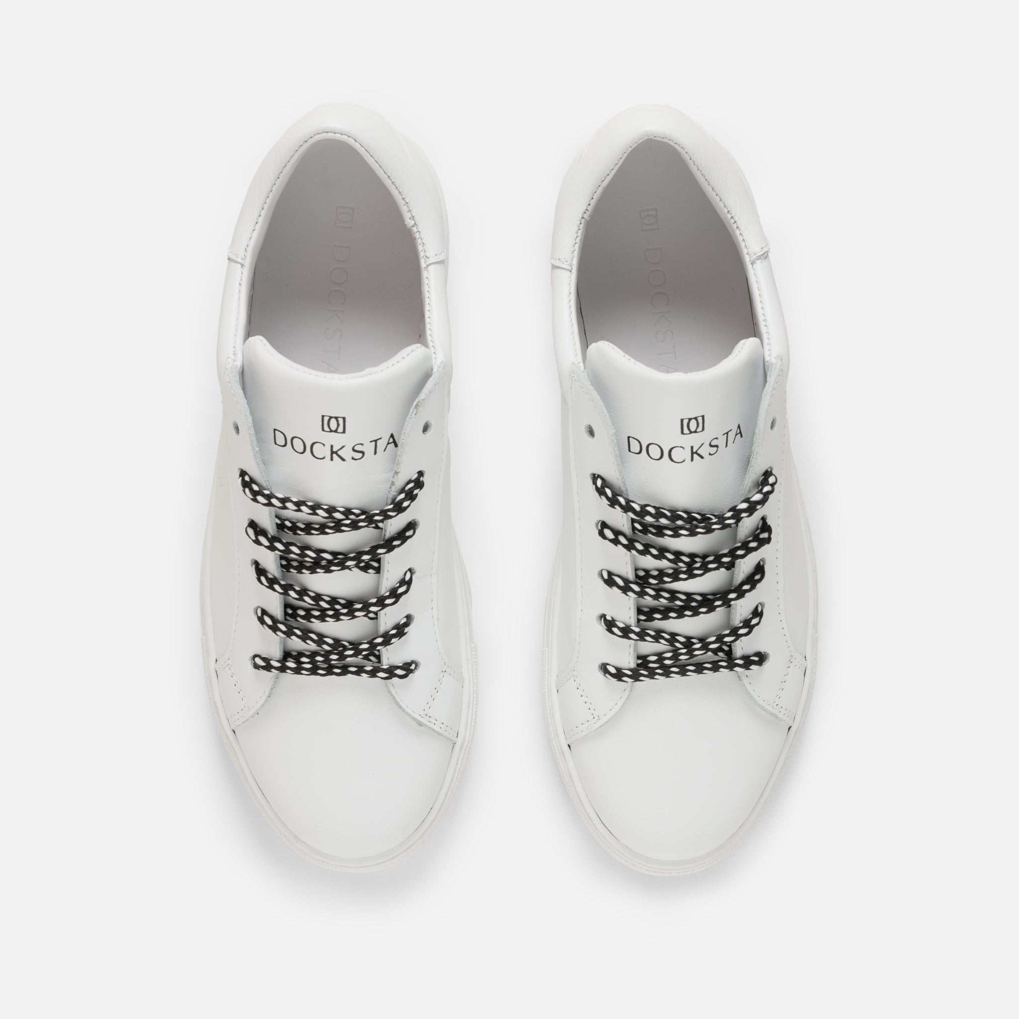 Damsneakers i vitt läder finns i storlekarna 36-42. Den har en rejäl gummisula som håller vatten och smuts borta vilket gör att det går bra att använda dem under en längre säsong. Innersulan i läder är skönt formad för att ge bästa komfort. Ett bra hälgrepp minskar risken för skavsår. Normal i storleken. Tillverkade i Portugal.