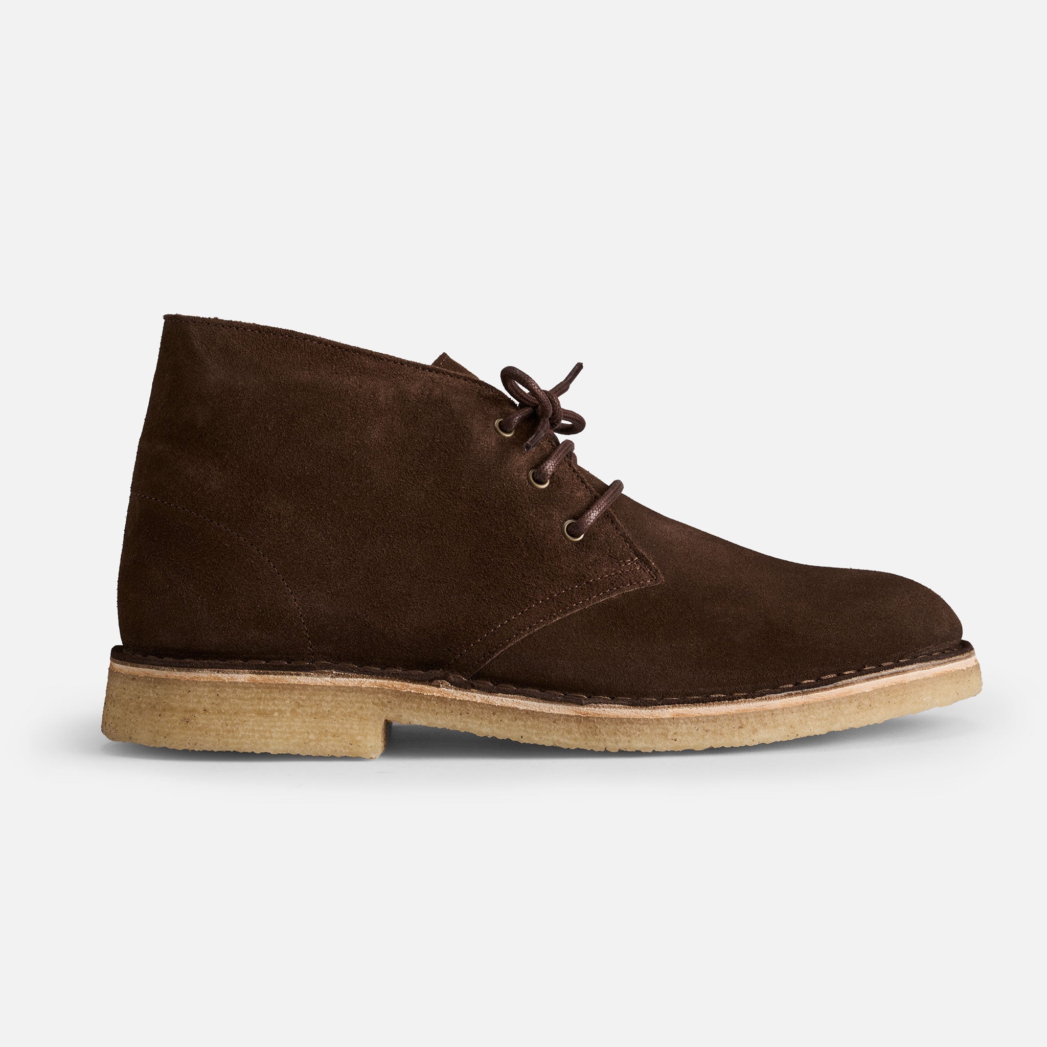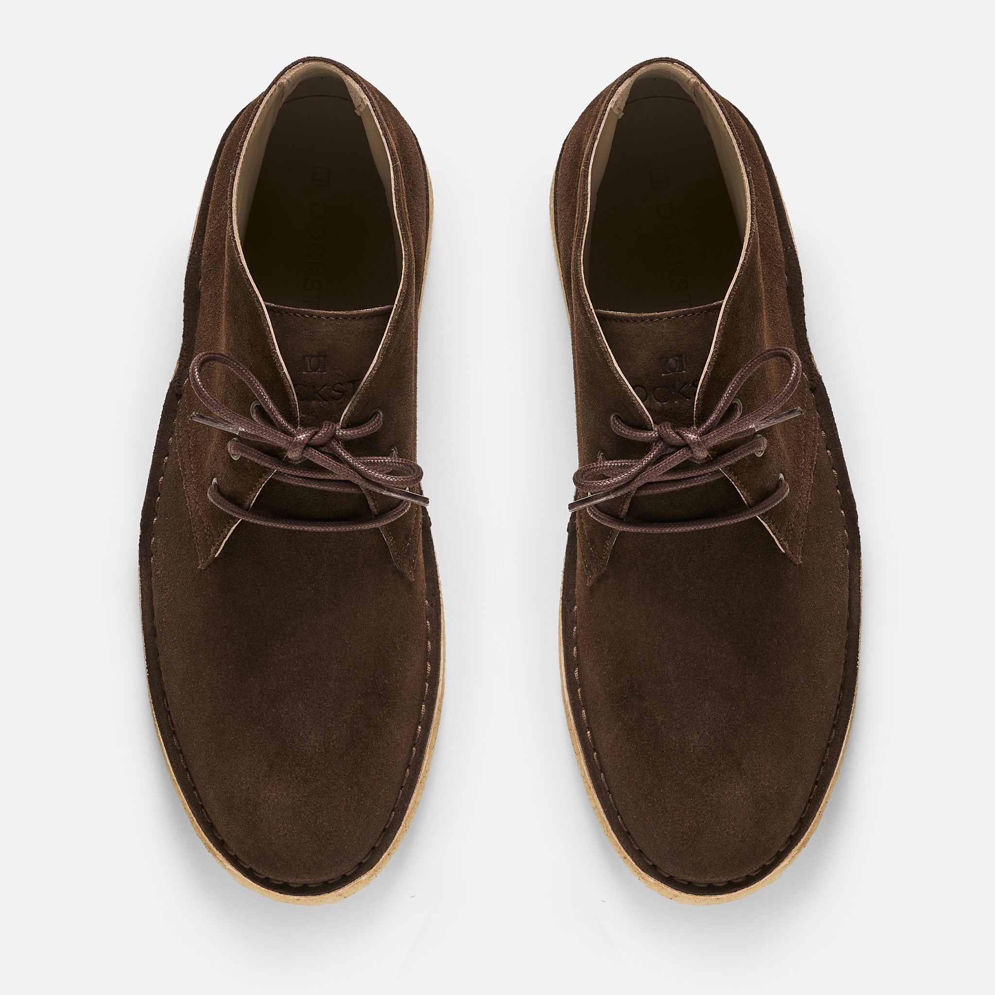 Dockstas ökenkänga har en ovandel i brun mocka som är impregnerad vilket hjälper till att hålla vatten och smuts borta. Lädret är pinnad på en läderbindsula (mellansula) med en stitchdown konstruktion där sömmen har sytts igenom sulan för längre hållbarhet. En gelänk finns vid hålfoten för att ge stadga till skon. Yttersulan består av creppad naturgummi som går att byta ut hos en skomakare efter slitage. Invändigt har kängan ett fint anilinläder som andas bra och en uttagbar dämpad iläggsula även den i läder för bättre komfort.