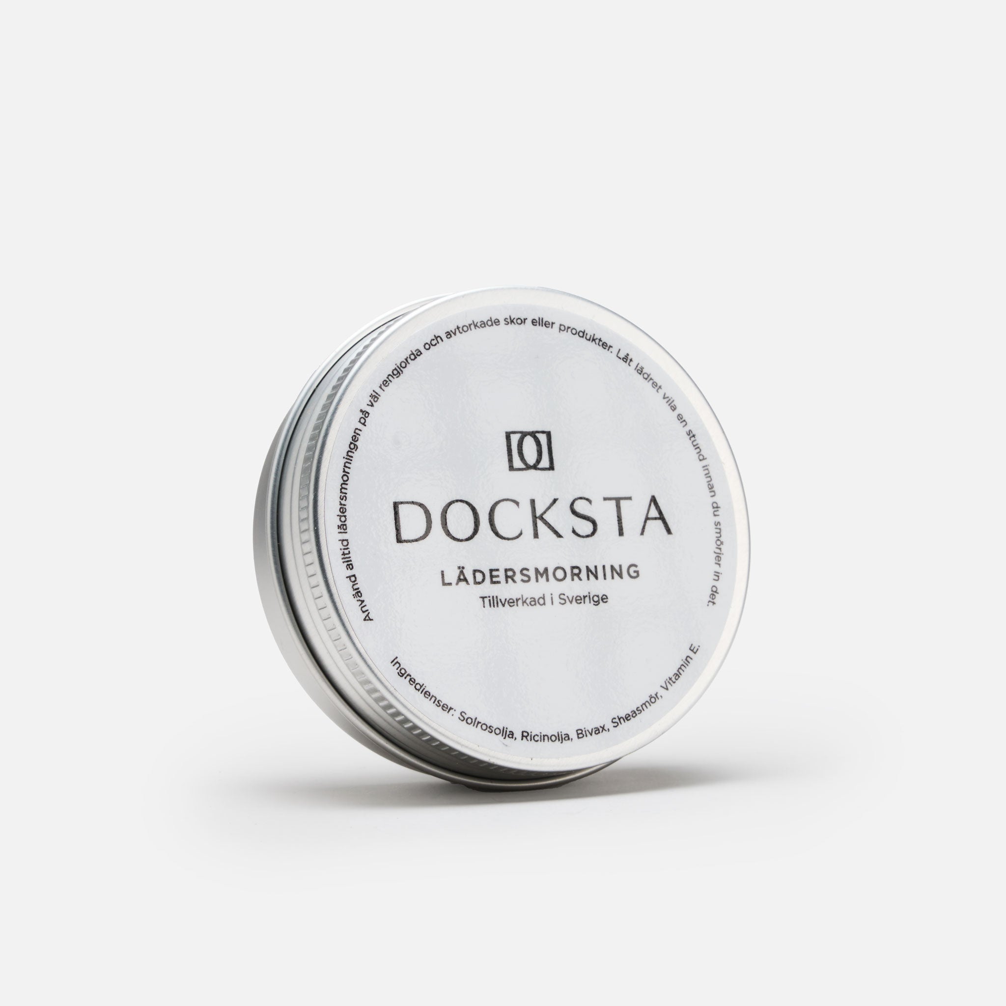 Ett mycket bra läder som är ekologiskt garvat med barkextrakt i Sverige. Lädret kan först uppfattas som lite styvt men blir snabbt mjukare när det börjar användas och åldras vackert. Rengör med lätt fuktad trasa, låt torka och smörj sedan in med ofärgat skovax eller skofett. Vi rekommenderar Docksta Sko's egna lädersmorning.