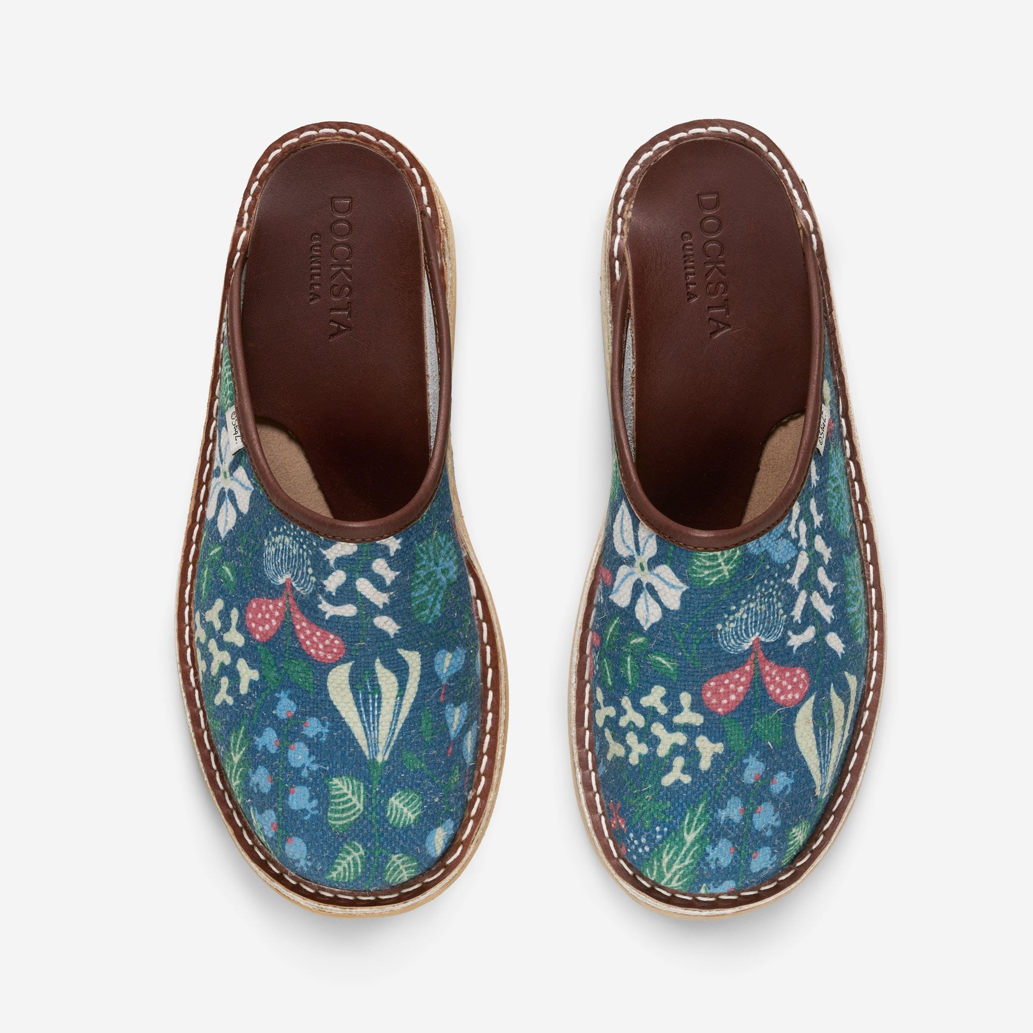 Gunilla Herbarium är en limiterad version av vår klassiska modell Gunilla, där Stig Lindbergs älskade mönster Herbarium möter vårt hantverk.