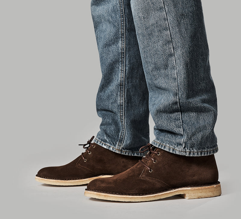 Sedan mitten av 1900-talet har ökenkängan varit en självklar del av modehistorien. Dess enkla och rena linjer har gjort den till en tidlös favorit som rör sig sömlöst mellan generationer och stilar. Det är en av de mest mångsidiga skorna du kan äga; den passar lika bra till ett par välsittande jeans som till chinos, och känns precis lika rätt på kontoret som på helgens festligheter.