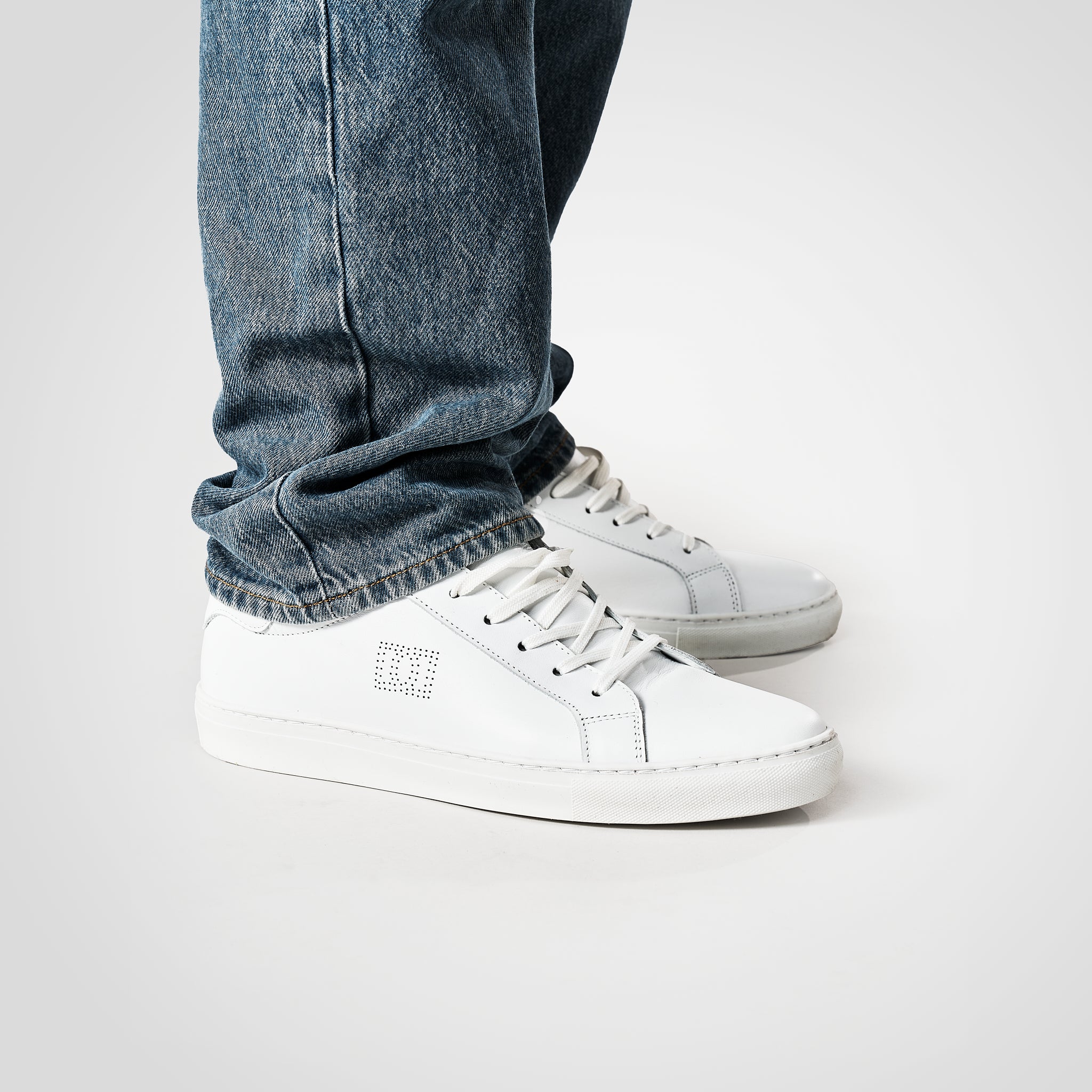 En herrsneaker tillverkad i vitt premiumläder med fokus på komfort och funktion. Skon är konstruerad med en mjuk och följsam innersula som ger stöd genom hela dagen samt en extra vadderad hälkappa som minskar risken för skoskav och ger en stabil passform.